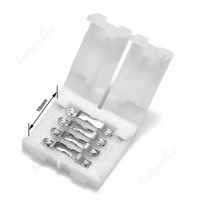 Solderless LED Strip Connector – 4-Pin 10mm & 2-Pin 8mm Clip for RGB 5050/2835 Light Strips